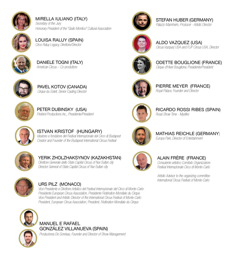 La temuta Giuria Tecnica composta dai massimi esperti del settore vede seduti sul tavolo a bordo pista: per l’Italia Mirella Iuliano, Presidente onorario dell’Associazione Culturale “Giulio Montico”, Daniele Togni Co-produttore American Circus, per la Francia Alain Frere Consulente artistico del Comitato Organizzatore del Festival Internazionale del Circo di Monte-Carlo, Urs Pilz Vice Presidente e Direttore Artistico del Festival Internazionale del Circo di Monte-Carlo, Odette Bouglione Presidente del Cirque d’Hiver Bouglione, Pierre Meyer Fondatore e Direttore Royal Palace, per l’ Ungheria Istvan Kristof Ideatore e fondatore del Festival Internazionale del Circo di Budapest, per gli Stati Uniti d’America Peter Dubinsky Presidente della Firebird Productions Inc., Aldo Vazquez Direttore, Circus Vazquez USA, per il Canada Pavel Kotov Direttore Senior del Casting, Cirque du Soleil, per la Spagna Rafael Gonzalez Villanueva Productores De Sonrisas, Fondatore e Direttore per lo Show Management, Ricardo Rossi Ribes Rossi Show Time, Louisa Raluy Direttore Circo Raluy Legacy, per la Germania Mathias Reichle Direttore Entertainment Europa Park, Stefan Huber Produttore e Direttore artistico Palazzo Mannheim, e per il KazakIstan Yerik Zholzhaksynov Direttore Generale State Capital Circus of Nur-Sultan city. gli artisti in competizione sono in lizza non solo per aggiudicarsi gli ambiti Latina d’Oro, Latina d’Argento e Latina di Bronzo ma anche i diversi premi speciali e scritture che vedranno, in futuro, lavorare i giovani e talentuosi artisti sotto i tendoni più famosi del mondo.