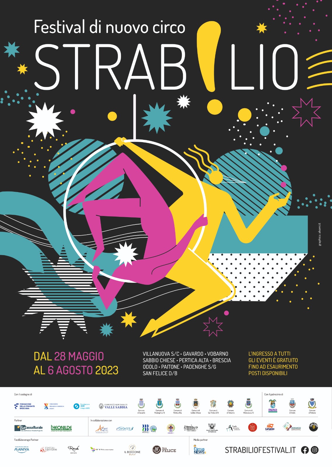 Lo spirito del circo è vivo e in movimento, pronto a incantare grandi e piccini con la sua magia senza confini. È proprio questo l’obiettivo di “Strabilio”, il festival di nuovo circo che torna per la seconda edizione consecutiva, portando una ventata di freschezza e spettacolo in dieci comuni della provincia di Brescia, disseminati tra la Valle Sabbia e il Lago di Garda. Anche in questa occasione CircusNews.it sarà al fianco di Strabilio supportandone la diffusione in rete.