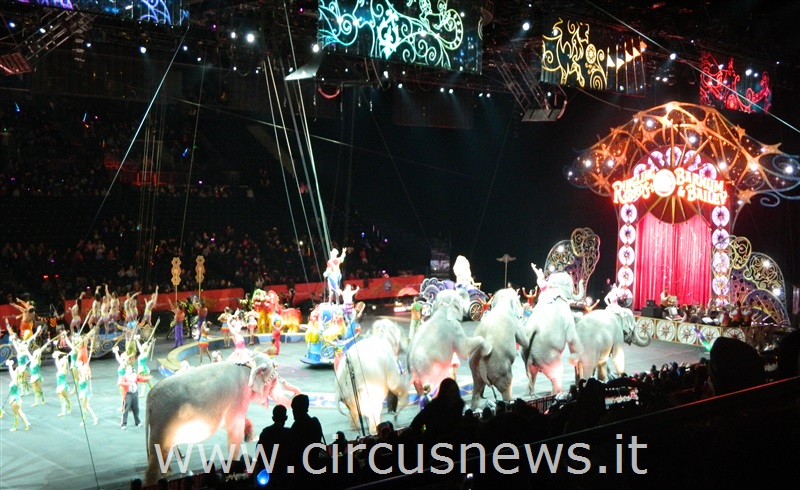 A scaldare l’ambiente entra un manipolo di clown, dopo pochi minuti il ringmaster concede la scena ad un elefante cavalcato da una ragazza che impugna una bandiera americana accompagnata dall’inno nazionale. E’ il preludio allo show.