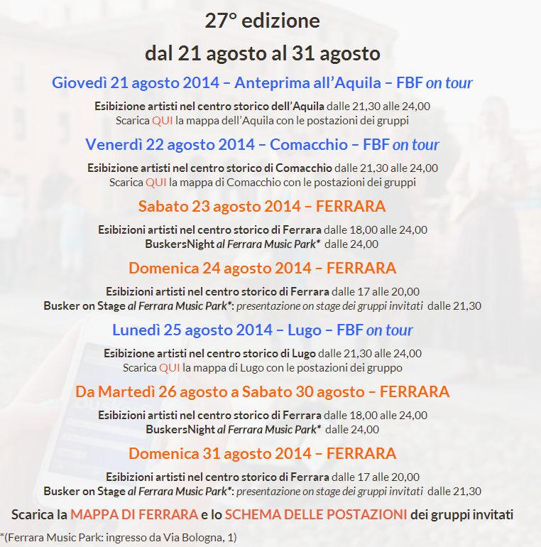 Sono i numeri del Ferrara Buskers Festival, il più importante festival mondiale dell’arte di strada che quest’anno arriva alla 27a edizione. Inizia questa sera con l’anteprima a Comacchio (dopo la preanteprima di stasera a L’Aquila) e da sabato sarà nel centro storico di Ferrara, Patrimonio dell’Umanità Unesco, fino al 31 agosto.