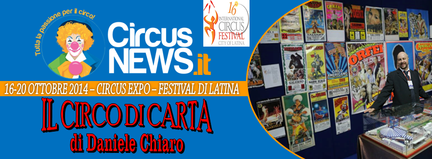 In occasione della 16^ edizione del Festival Internazionale del Circo “Città di Latina”, come ogni anno, si tiene "Circus Expo” con lo scopo di presentare all’opinione pubblica le numerose e varie implicazioni della cultura circense nelle più differenti modalità espressive delle arti e della comunicazione. Quest’anno Daniele Chiaro, in collaborazione con il sito web Circusnews.it, presenterà “Il Circo di Carta”, uno spazio espositivo con numerosi pezzi della sua collezione di materiale pubblicitario circense ed alcuni modellini realizzati a mano.