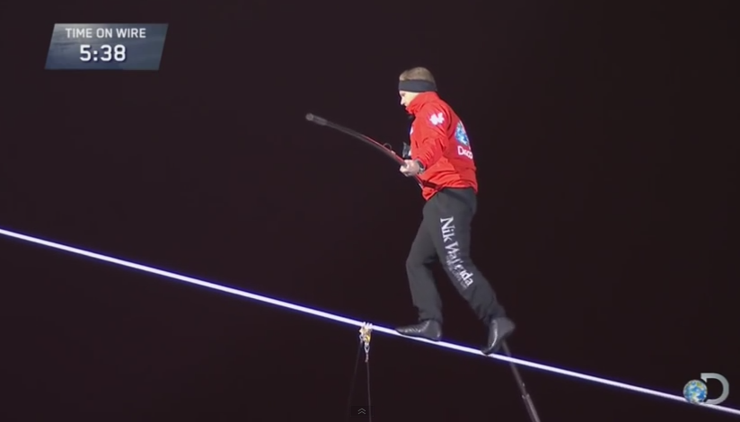 La sua “passeggiata” nel vuoto è cominciata a 179 metri di altezza, per poi impennarsi a 205, tutto in 6 minuti e mezzo. Quello di Nik è un mestiere tramandato in famiglia: suo nonno, funambolo anche lui, morì mentre camminava sospeso sul nulla a Porto Rico.