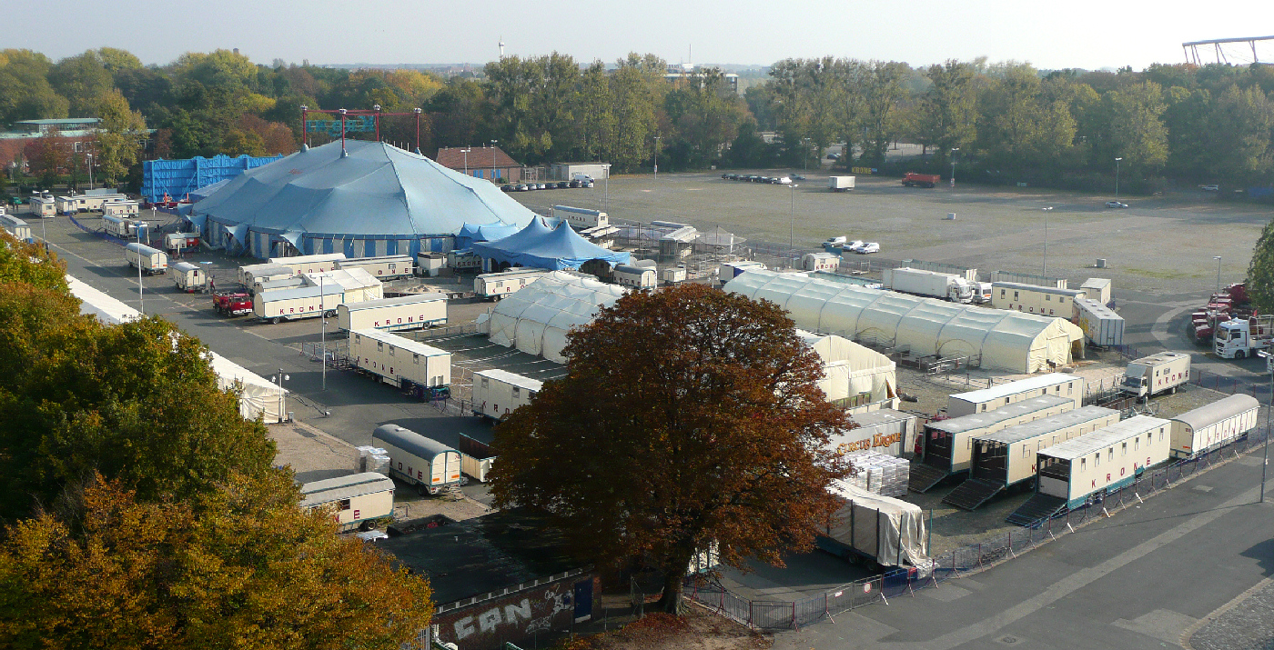 Attualmente il Krone effettua la propria tournèe tra aprile e settembre, spostando una cittadella di persone e animali attorno ad un tendone con 4.500 posti a sedere, una superficie di 48 x 64 metri e un’altezza alla cupola di 14 metri. Si estende su una superficie di circa 3.000 metri quadrati.