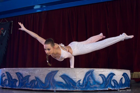 Alyona Pavlova è una giovane artista proveniente dalla Russia. Acrobata audace e di grande temperamento, Alyona presenta un numero di “cerchio aereo”: si tratta di una disciplina acrobatica che vede l’artista esibirsi a diversi metri da terra all’interno di un attrezzo circolare. Alle particolari doti tecniche richieste, pertanto, va a sommarsi quella componente di rischio che è propria delle esibizioni aeree. Nei sei minuti della sua performance, Alyona presenta diversi quadri, scanditi efficacemente dagli accenti della colonna sonora: la coreografia evoca un temibile cerchio di fuoco dal quale l’artista trae scampo alternando pericolose pose plastiche, connotate da equilibri complessi, a passaggi di grande vigore ed energia. La fuga dal cerchio è suggellata nel finale del numero da una lunga sequela di rapidissime pirouettes che l’artista propone in modo originale ed inatteso.