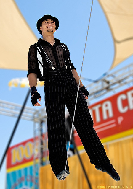Evgeny Vasilenko è un giovane artista proveniente dalla Russia. Figlio d’arte, Evgeny, fin dalla più tenera età ha intrapreso la sua formazione sotto la guida dei genitori. Laureatosi a Mosca nelle discipline del Circo, ha iniziato a lavorare come professionista nel 2003 ma è alla sua prima partecipazione ad un Festival Internazionale. Evgeny presenta un numero di “filo molle”, una disciplina acrobatica che si distingue dal “filo” tradizionale proprio per la debole tensione dell’attrezzo. Nei sei minuti della performance, Evgeny si presenta in modo divertente ed autoironico presentando con apparente leggerezza e disinvoltura anche i passaggi più complessi. Al suo fianco, nella vita ma anche in pista, sua moglie Anna, già nota al pubblico di Latina per aver calcato la pista del Festival dal 2009 al 2012 con il corpo di ballo del Circo Bolshoi di Mosca.