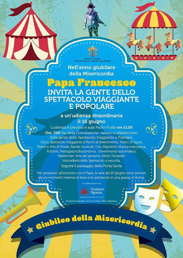 Nell'anno giubilare della Misericordia, Papa Francesco invita la gente dello spettacolo viaggiante e popolare a un'udienza straordinaria il 16 giugno 2016.