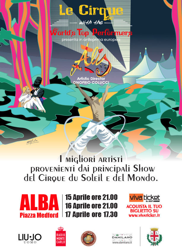 Dopo il folgorante esordio di Lucca e la conferma del successo di Bergamo, finalmente Le Cirque with the World’s Top Performers sbarca ad Alba, già sold-out da settimane. La carovana è appena arrivata nella città piemontese e stanno per iniziare i lavori per l’allestimento, in Piazza Medford, del maestoso Chapiteau (60mx60m), che ospiterà oltre 1600 posti e dove, nelle serate del 15, 16 e 17 aprile, andrà in scena “Alis”.
