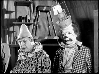 Del resto, tanto Chaplin quanto Keaton provenivano dal vaudeville che con il circo aveva molto in comune, specie per i numeri di abilità e acrobazia: Keaton, ad esempio, ebbe il suo nome d’arte – “Buster” ovvero “rompicollo” – da Houdini che lo aveva visto esibirsi a tre anni insieme ai genitori, attori di varietà. Se Keaton porta all’estremo il lato “catastrofico” dell’agire clownesco, Chaplin incarna nell’immaginario collettivo molto più spontaneamente l’idea del clown, riuscendo a sintetizzarne, attraverso il personaggio dell’omino vagabondo con baffetti e bombetta, il prototipo cinematografico. Si tratta, infatti, di una figura che fa leva sul lato patetico delle situazioni, sull’alternanza tra ilarità e tristezza, sull’assenza di un ruolo sociale definito oltre che, come detto, su un abbigliamento molto simile a quello dei clown del circo.