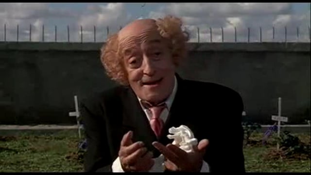Ancora una volta il clown (o qualcosa che gli si avvicina molto) è figura che smaschera la realtà di una vita sempre uguale a se stessa (quella della finzione scenica, certo, ma anche quella di tutti coloro che vivono un’esistenza irreggimentata) per rivelare una verità superiore o, per lo meno, per offrire un barlume di lucidità, un sussulto di folle consapevolezza.
