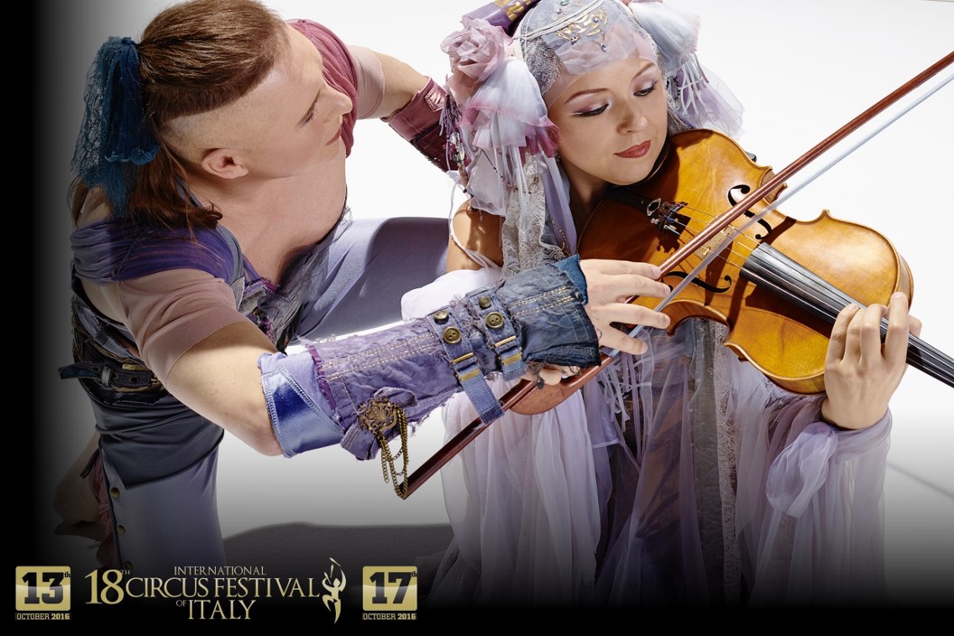 Viktor e Mariana sono i due artisti del Duo Viola. Partecipano al Festival in rappresentanza di due nazioni: l’Ucraina e la Russia. Viktor, nato a Kiev, ha frequentato la Scuola di Circo della capitale ucraina e si esibisce come artista circense dal 1983. Mariana, nata a Mosca, ha alle spalle un’importante formazione come musicista conseguita a Berlino, ha debuttato come artista nel 1996 fino a divenire nel 2005 membro dell’Orchestra del “Deutsche Oper Berlin”. L’efficace contaminazione tra le competenze musicali di Mariana e le doti circensi di Viktor ha prodotto “Melody of Balance”: una performance nella quale i complessi equilibri tra gli innumerevoli archi della viola di Mariana si propongono come rappresentazione e metafora dell’amore e della vita nella loro sublime bellezza ma anche nella loro fragilità.