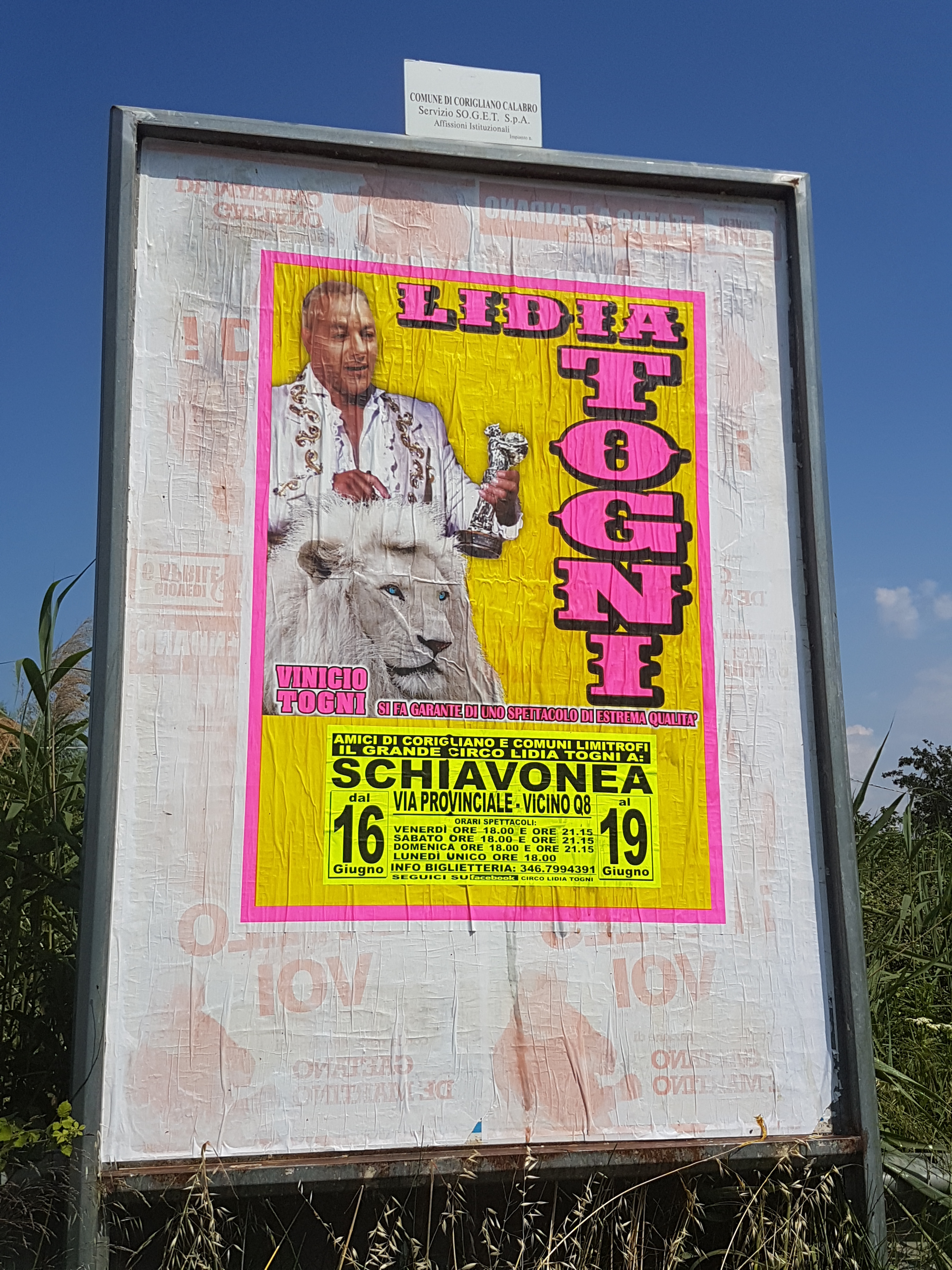 CORIGLIANO CALABRO – Un’esplosione di luci colori e suoni. Con questa prerogativa Lidia Togni organizzatrice di grandi eventi e da anni alla ricerca di spettacoli innovativi sarà a Schiavonea, in via Provinciale vicino stazione di servizio Q8, da venerdì 16 giugno a lunedì 19 giugno, con un nuovo suggestivo show. Un evento davvero straordinario: per due ore, musiche e ritmi coinvolgenti, coreografie innovative, luci ad effetto accompagnano un cast internazionale. In pista Vinicio Togni, figlio di Lidia, direttore del complesso circense, con la straordinaria ed unica giostra equestre, premiata con il Clown d’Argento al Festival del Circo di Montecarlo e con la medaglia commemorativa della Presidenza della Repubblica Italiana al Festival del Circo d’Italia, Città di Latina.