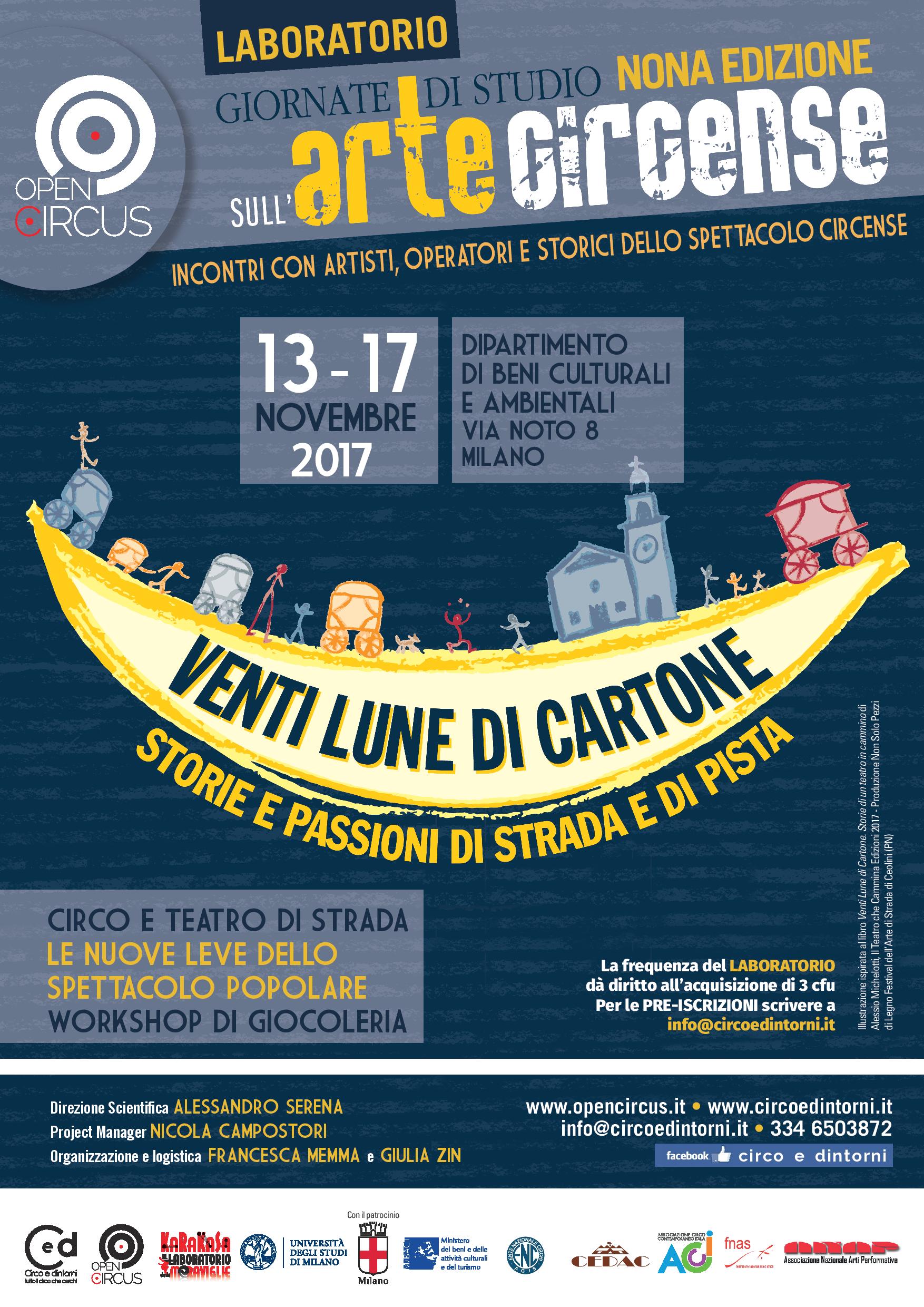 Il circo torna protagonista all'Università degli Studi di Milano. Artisti, compagnie, operatori ed esperti dello spettacolo popolare incontreranno gli studenti in una settimana di dibattiti e performance dal vivo. Immancabile il workshop di giocoleria con trainer professionisti, uno dei momenti più apprezzati dagli studenti. Le Giornate di Studio sull'Arte Circense offrono un panorama completo all'affascinante mondo del circo, dal classico tendone felliniano alle atmosfere romantiche di Chaplin, passando per i colossi d'avanguardia del Cirque du Soleil e per le nuove formazioni di circo di strada.