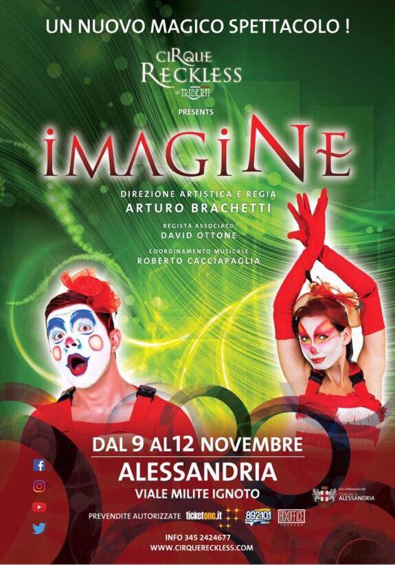 Imagine è uno spettacolo dall’impronta natalizia e il Cirque Reckless è una vera e propria rivoluzione del circo italiano. È anche uno spettacolo di nuova concezione, più completo del tradizionale spettacolo teatrale grazie alla rappresentazione di tutte le “performing arts” di cui si avvale: 40 artisti, maestri nelle proprie discipline come la danza, il canto dal vivo, la recitazione, le acrobazie, i numeri sulla destrezza e perfino le nuove tecnologie fanno parte di una dimensione emozionale e spericolata nel rispetto del nome “Reckless”, spericolato appunto.