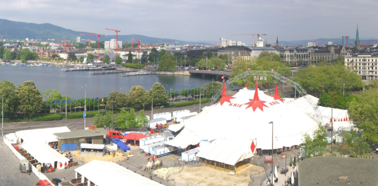 Il circo nazionale svizzero Knie dal 5 maggio al 3 giugno è a Zurigo sulla Sechseläutenplatz, la centralissima piazza in riva al lago.