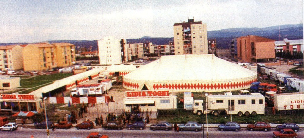 Foto degli anni 50, Lidia Togni (col gruppo di trapezisti del Circo Togni) è la seconda da destra, con Wanda Miletti, Missi e Liliana Miletti. In piedi, Guglielmo Casagrande, Oscar, Cesare e Willy Togni, Ugo Miletti