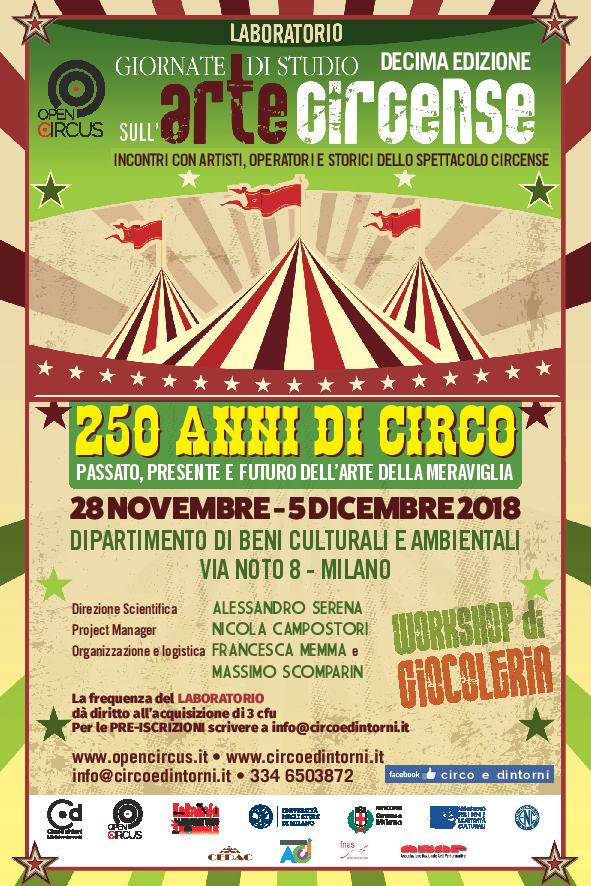 Il progetto si svolgerà nelle sedi dell'Università degli studio di Milano (presso il Dipartimento di Beni Culturali e Ambientali), nella settimana prevista saranno presenti in sede: aristi, operatori del settore, performer e storici della disciplina che celebreranno i 250 anni del circo, tramite passaggi storici e contrapposizioni con il presente e il futuro dell'arte viaggiante; non mancheranno momenti di riflessione collettiva e esperienzale in cui il pubblico stesso sarà coinvolto in interventi atti a trasmettere sensazioni e idee di questo mondo colorato e pieno di sfaccettature. Momento di grande interesse sarà il workshop di giocoleria che si terrà nei giorni 28/29/30 Novembre e ancora 3/4 Dicembre dalle 10:00 alle 13:30.