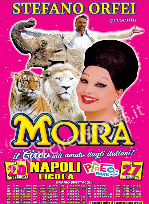 Per il secondo anno consecutivo il Circo Moira Orfei, società tra Stefano Nones Orfei e la famiglia Montemagno, ritorna a Napoli per le festività natalizie 2018/2019. Quest'anno ad ospitare il Circo Moira Orfei sarà la piazza del Pareo Park di Licola. Gli spettacoli sono in programma dal 20 dicembre 2018 al 27 gennaio 2019.
