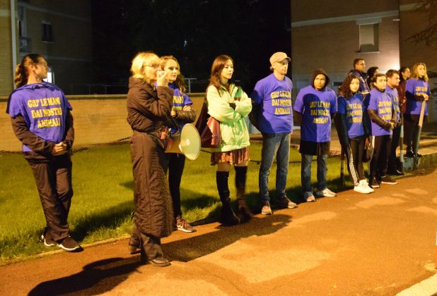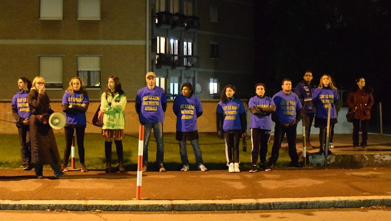 Sono le ore 20.00 di mercoledì 1 novembre, gli attivisti della LAV (Lega Anti Vivisezione) di Reggio Emilia seduti attorno a un tavolo della pizzeria La Pignatta di via Premuda per festeggiare l’evento “World Vegan Day”, fuori una ventina di circensi, con megafono e magliette blu dalla scritta “Giù le mani dai nostri animali”.