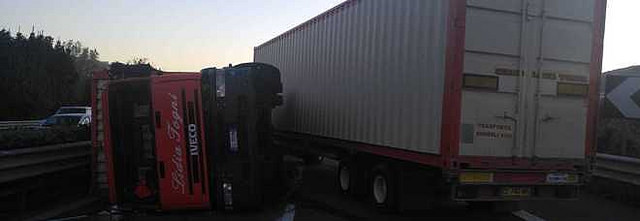 Attimi di paura lungo il raccordo autostradale Salerno – Avellino a causa di uno scontro tra un autoarticolato ed altri due mezzi pesanti.
