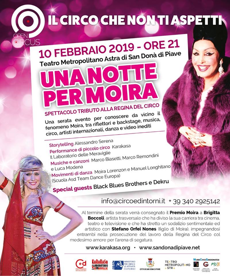 Domenica 10 febbraio alle 21 il Festival Open Circus entra nel vivo con un originale spettacolo di teatro-circo dedicato a Moira Orfei per il quale sono rimasti a disposizione ancora pochi biglietti.