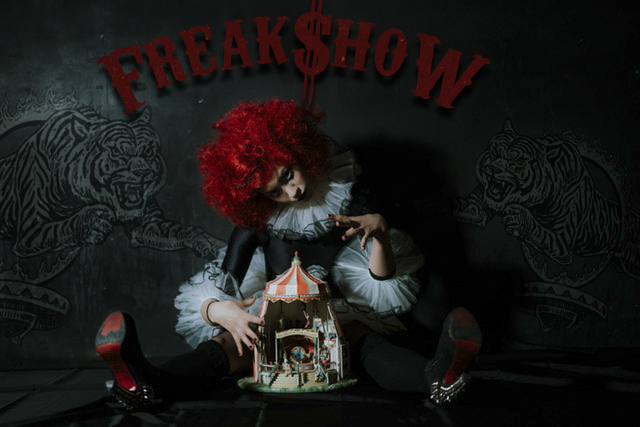 Ho scelto questo titolo perchè volevo che le persone associassero la mia immagine a quella del magico mondo del circo. Freakshow tradotto in italiano significa "Fenomeno da baraccone", ed è cosi che mi hanno etichettato per via della mia scelta di vita. Non tutte le persone "normali" avrebbero avuto il coraggio di lasciare tutto e intraprendere questo tipo carriera artistica.
