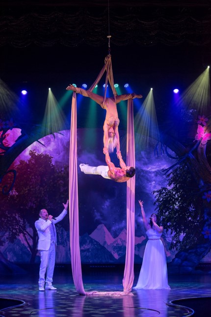 Era il 2011 quando i giovanissimi Walter e Moira, agli inizi della loro carriera artistica, calcavano per la prima volta, e già con successo, la pista del Festival di Latina. Poco più che ventenni, i due artisti italiani sono oggi tra i depositari dell’imponente e gloriosa tradizione circense della famiglia Orfei: figli di Lara Orfei Nones, Walter e Moira sono dunque nipoti dell’icona del Circo italiano nel mondo, Moira Orfei e di Walter Nones. Tornano ad esibirsi a Latina con un numero di verticali: si tratta di una disciplina cara al Circo tradizionale rivisitata in chiave moderna grazie ad una colonna sonora e ad una coreografia capaci di evocare atmosphere epiche.