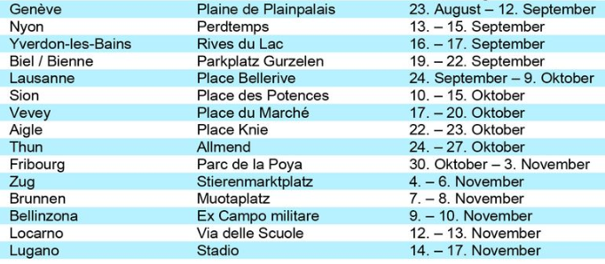 Da mercoledì 20 novembre a domenica 24 novembre 2019, altri 6 spettacoli a Rapperswil, città svizzera del Canton San Gallo, sul lago di Zurigo. Ospiti di punta dello spettacolo 2019 sono i comici Victor Giacobbo e Mike Müller.