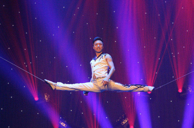 Zhang Fan è un giovane artista nato in Cina, a Hubei, nel 1989. La sua specialità è il “filo molle”, una disciplina acrobatica che si distingue dal “filo” tradizionale proprio per la debole tensione dell’attrezzo. La performance di Zhang Fan, tuttavia, si discosta dalle più comuni interpretazioni poiché l’artista, nel mostrare competenze sia da equilibrista che da verticalista, utilizza attrezzi quali la scala ed un monociclo che rendono l’esibizione particolarmente audace.