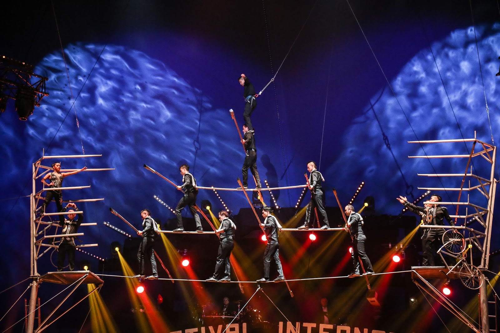 Era l’Ottobre 2012 quando, in occasione della 14^ edizione di questo Festival, i Gerlings si aggiudicarono l’ambito “Latina d’Argento” con il loro sorprendente numero di filo alto. È ancora nella memoria degli appassionati la “piramide a sette elementi” che tenne con il fiato sospeso il pubblico di Latina. I nove artisti colombiani, capitanati da Douglas David Gerling Lord, presentano una nuova performance sorprendente sia per le doti tecniche impiegate sia per l’intrinseca pericolosità: pathos e concentrazione si coniugano efficacemente con l’entusiasmo ed i colori tipici dei Paesi dell’America Latina.
