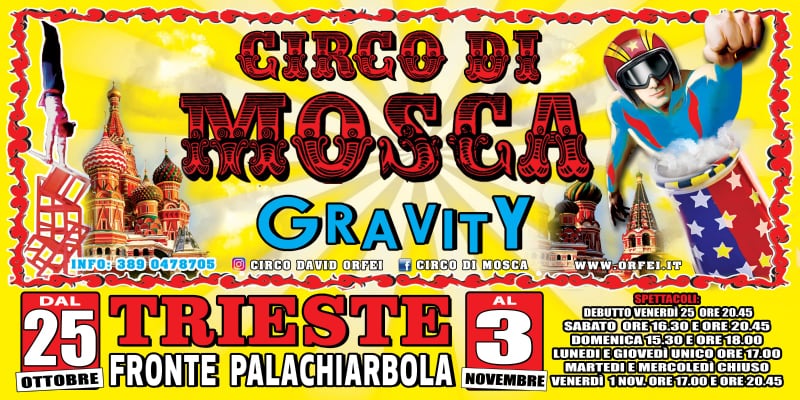 Il nuovo tour italiano partirà dal Friuli Venezia Giulia, prima tappa Trieste dal 25 ottobre al 3 novembre fronte Pala Chiarbola. Lo spettacolo che verrà presentato si intitola "Gravity" e, come si può notare dal manifesto, vedrà protagonisti nuovamente il verticalista ed equilibrista sulle sedie Erik Triulzi e l'uomo proiettile. Seguirà nei prossimi giorni una news dettagliata sulla scaletta dello spettacolo con tutti gli artisti.