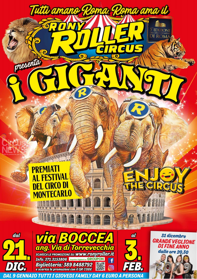 Una grande novità al Rony Roller Circus della famiglia di Edoardo Vassallo. In vista della tappa natalizia di Roma – Via Boccea (angolo Via di Torrevecchia) sono in arrivo gli elefanti della famiglia di Joy Gärtner già vincitori del Clown di Bronzo al 43° Festival Internazionale del Circo di Monte-Carlo e del Junior d'Argento all' 8° New Generation di Monte-Carlo.
