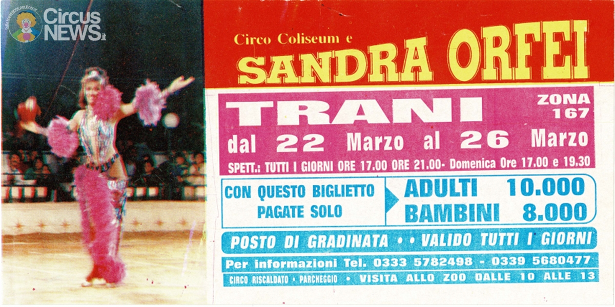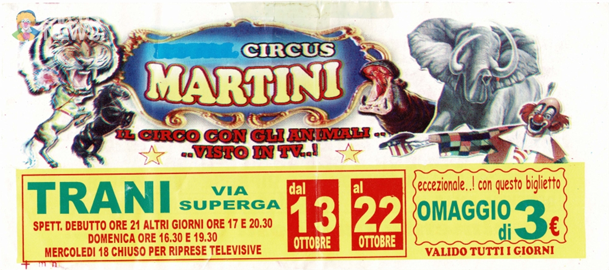 Sono pezzi appartenenti alla collezione dei biglietti del circo che scrupolosamente i suoi genitori hanno conservato sin dal primo loro anno di matrimonio. Tali cimeli storici si suddividono in: biglietti di entrata al circo e/o biglietti omaggio/sconto consegnati per le strade della città. Dal dicembre 1990 sino ad oggi, numero 41 sono stati i vari circhi che hanno fatto tappa nella CITTÀ DI TRANI (PUGLIA), fra questi soltanto alcuni ricordano la tappa svolta in altri paesi limitrofi e non (Bari, Molfetta, Andria e Barletta).