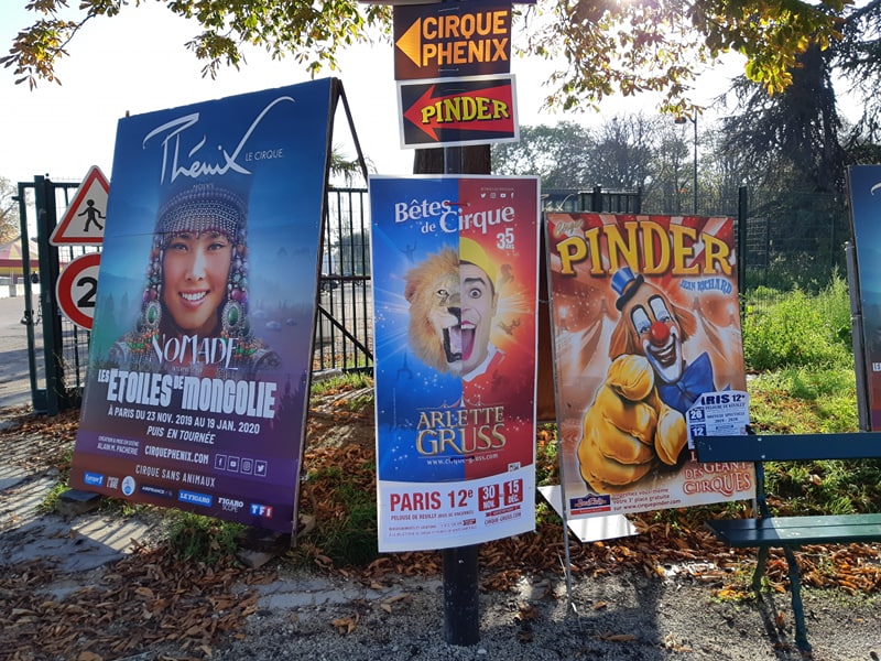 Come ogni anno in questo periodo, i 10 ettari del Prato di Reuilly, alle porte del Bois de Vincennes, a Parigi ospitano tre colossi circensi contemporaneamente. Si tratta del Cirque Phénix, del Cirque Pinder e del Cirque Arlette Gruss.