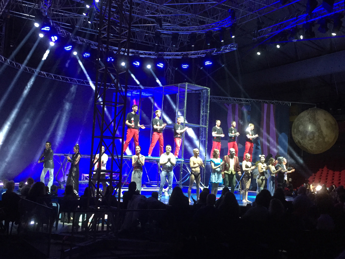 Ma il sogno continua lassù, con Flight of Passion, che è probabilmente il miglior numero di cinghie aeree attualmente al mondo. Dmitriy Grygorov, dall’Ucraina, presenta con Anastasiia Vashchenko l’attrazione con la quale nel 2009 ha vinto l’ambito Clown d’Oro al 33° Festival Internazionale del Circo di Montecarlo, portato poi in vari spettacoli del Cirque du Soleil (Corteo, Quidam). Non è solo un numero aereo, è una danza, un passo a due in aria in cui, con estrema fluidità dei movimenti, entrambi passano da porteur a agile. Impressionanti le evoluzioni con Anastasiia sostenuta con la sola forza della dentatura di Dmitriy. Una di quelle esibizioni che vorresti non terminassero mai. E’ difficile trovare un termine per descrivere la bellezza, l’eleganza, l’originalità di questa spericolata performance aerea. Forse il termine che più si avvicina è “perfezione”.