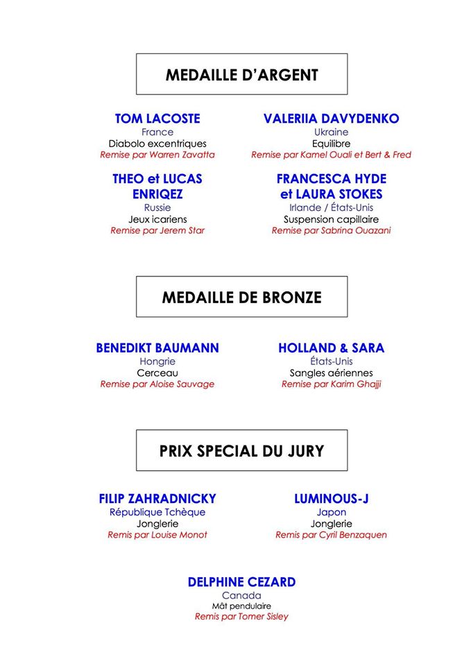 41° Festival Mondial du Cirque de Demain: il palmarès
