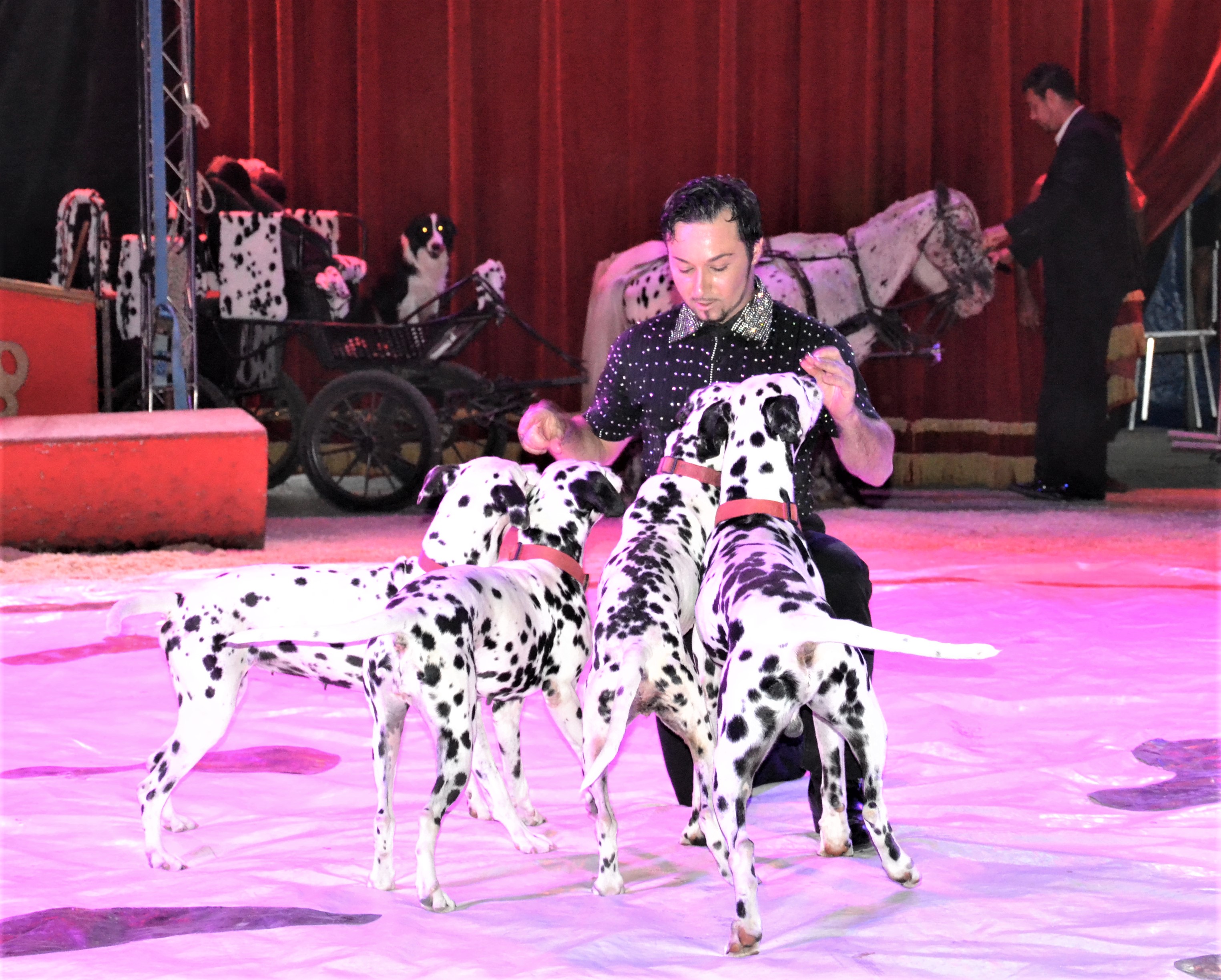 Così l’alta scuola equestre di Kevin Niuman con la sua magnifica cavalleria, la parata esotica con cammelli, lama e zebre, canguro ed in esclusiva dei bellissimi cani dalmata che impersoneranno “La carica dei 101” tratta dall’omonimo film, per poi arrivare alla famiglia di Redi Cristiani e Soara Bobba con le loro magnifiche tigri reali del bengala. Non manca il simpaticissimo clown Arcangelo Busnelli, in arte Banana.