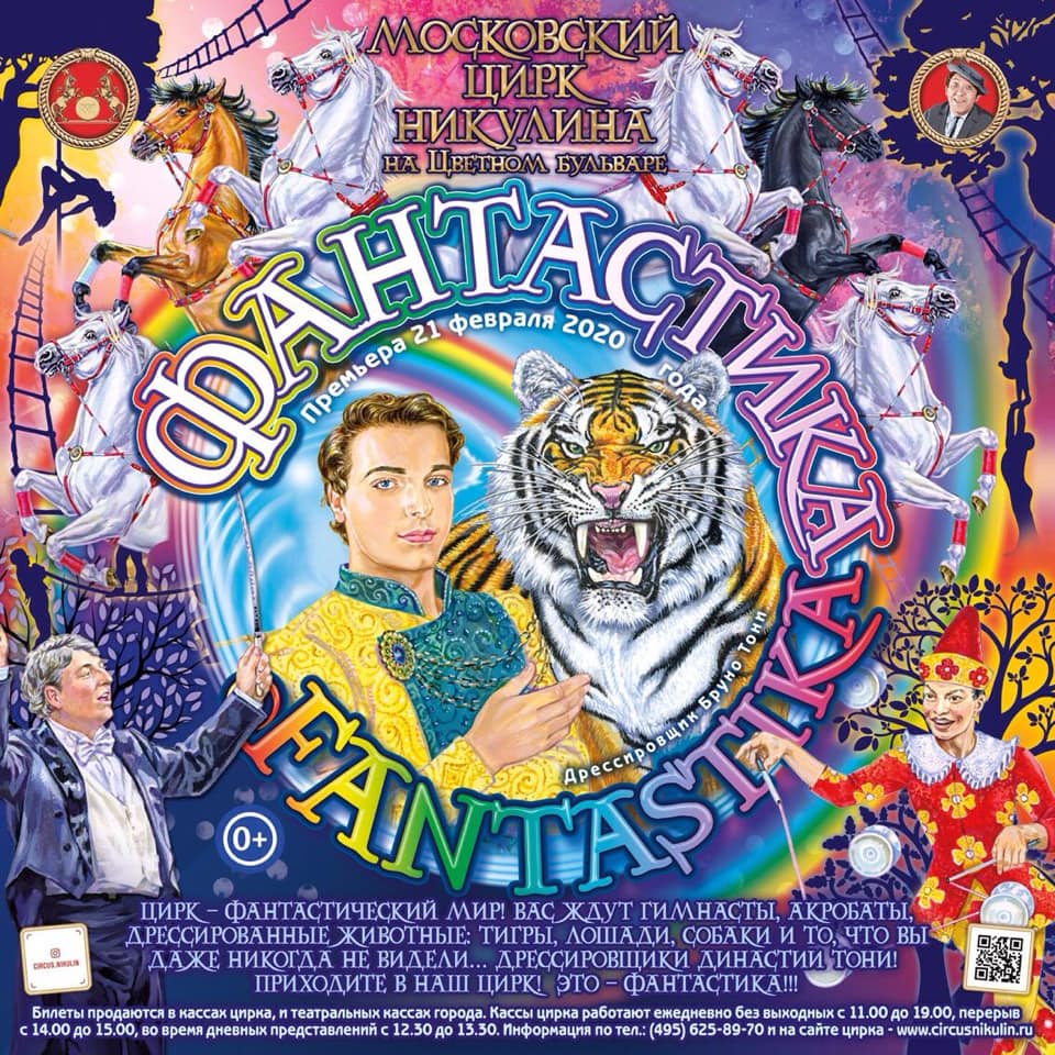 Dopo l'anteprima di ieri sera, debutta ufficialmente oggi, 21 febbraio 2020, al Circo Nikulin di Mosca, il nuovo spettacolo "Fantastika" scritto e diretto da Antonio Giarola, con le coreografie di Elena Grossyul, costumi di Renato Castaldelli, colonna sonora originale di Mario Stendardi.
