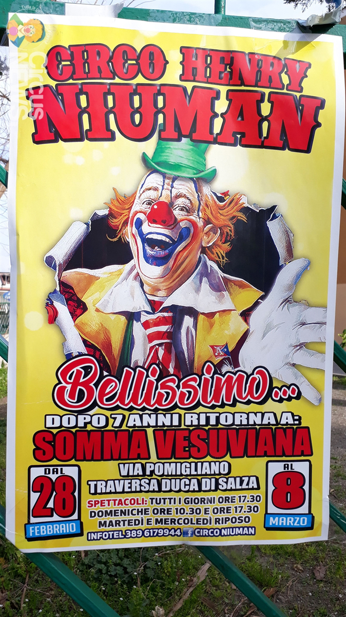 Il Circo Henry Niuman ha da poco terminato la società con il Circo Wegliams della famiglia Formisano e per questa nuova veste utilizza anche la biglietteria dell'ex Circo Weiss della famiglia Cirillo.