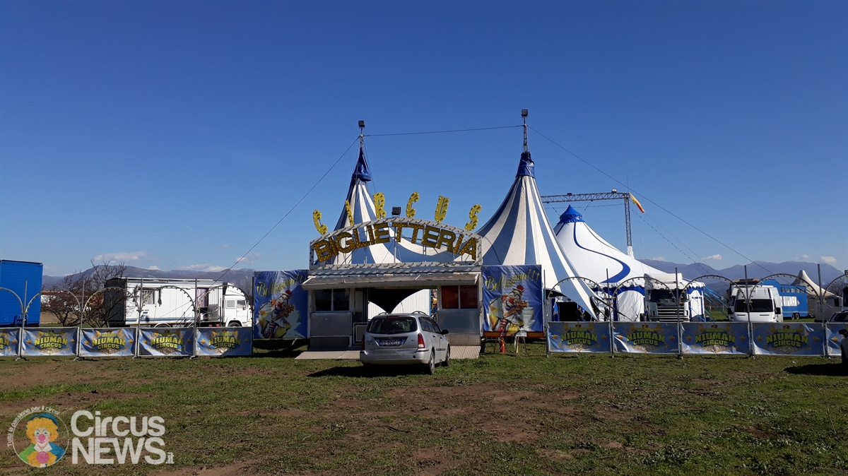 E' stato inaugurato ieri 28 febbraio 2020, con il debutto degli spettacoli a Somma Vesuviana (NA), il nuovo chapiteau del Circo Henry Niuman della famiglia Intruglio. Si tratta di un due antenne di colore bianco e blu.