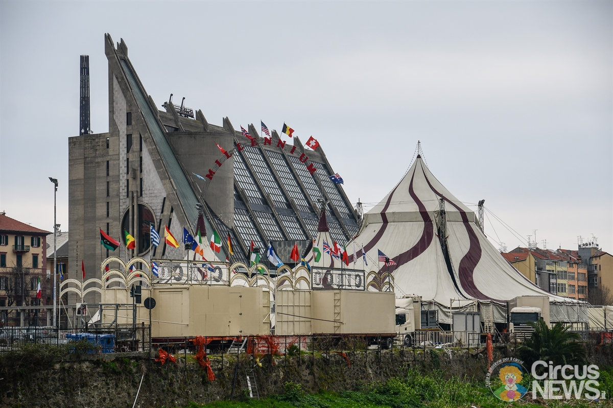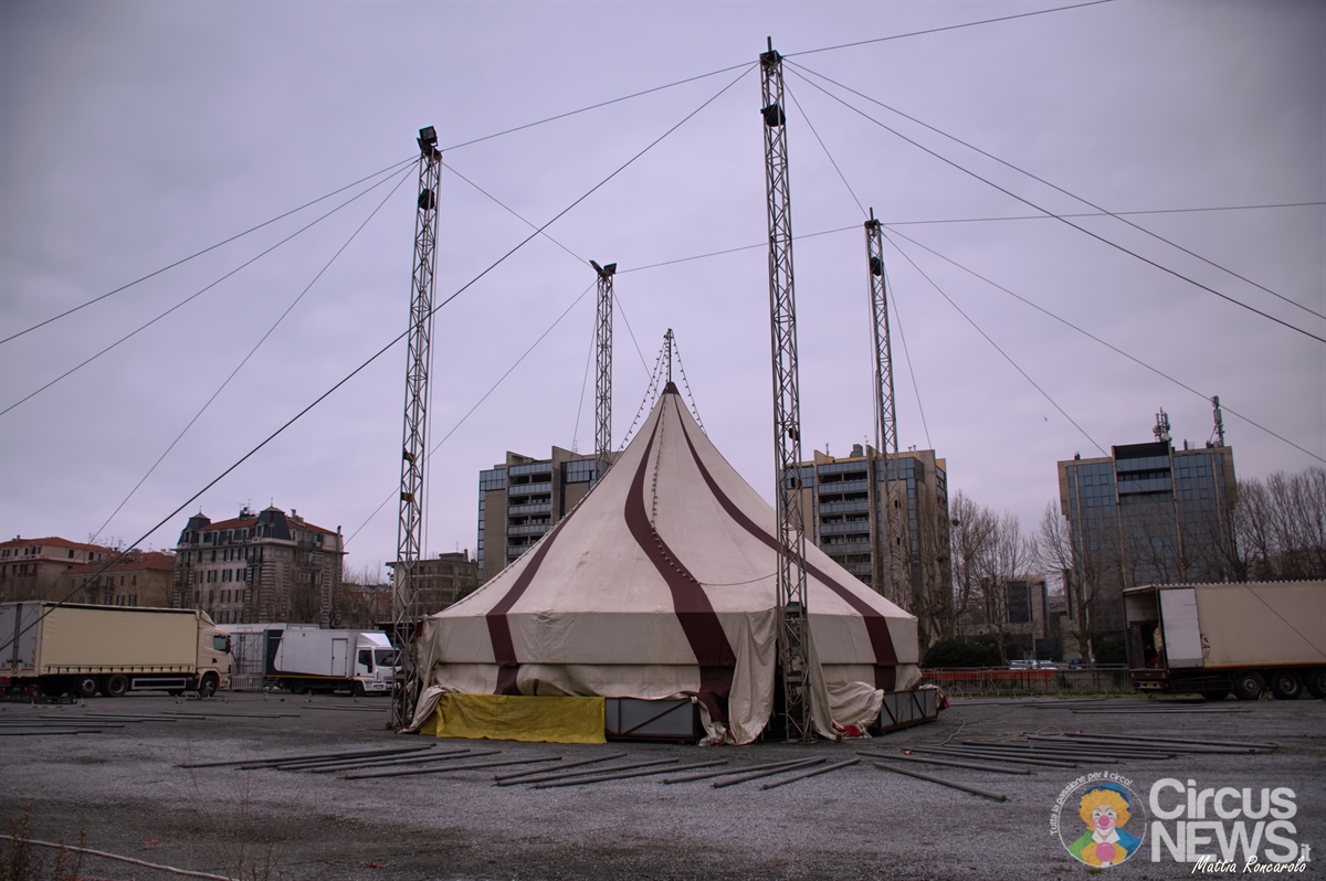 Oggi vi proponiamo le foto degli esterni durante e dopo la fase di montaggio realizzate dai nostri corrispondenti liguri Davide e Mattia Roncarolo, che ringraziamo. Le foto sono state scattate in Piazza del Popolo dove il circo presenterà gli spettacoli dal 6 al 23 marzo.