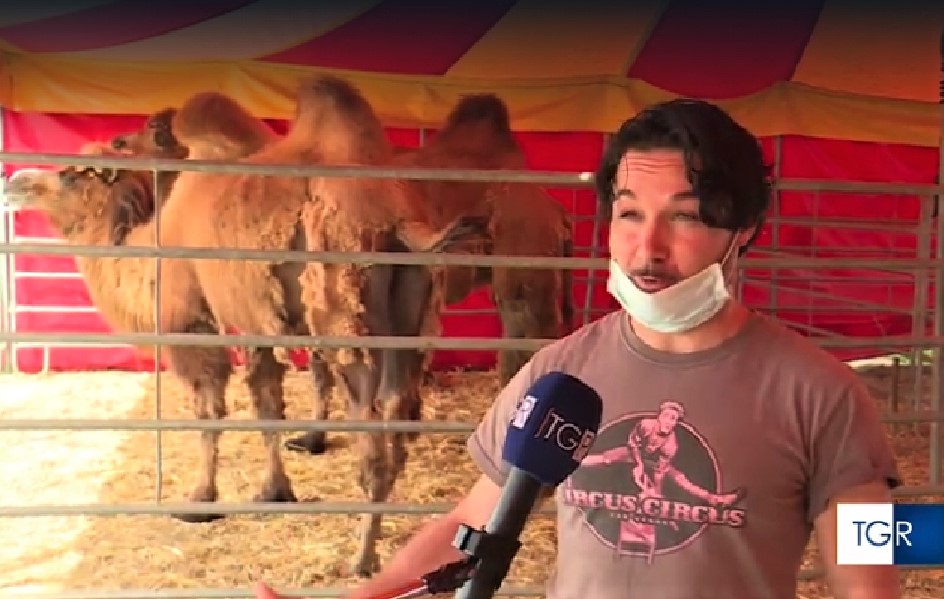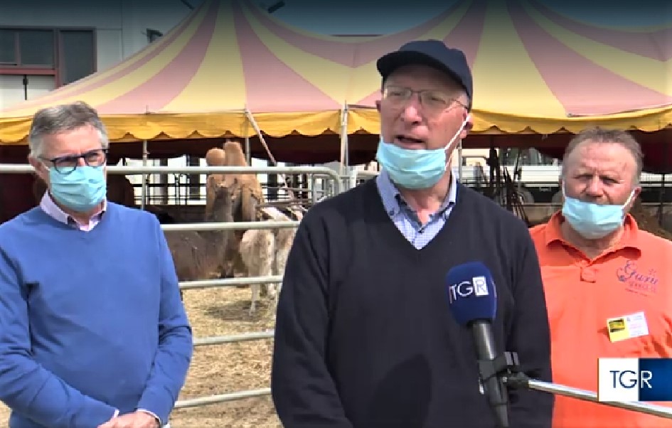 Nelle foto: Davide Sergio Rossi presidente di “Bandiera Gialla” e David Busnelli dell’omonimo circo intervistati dal Tg3 Veneto