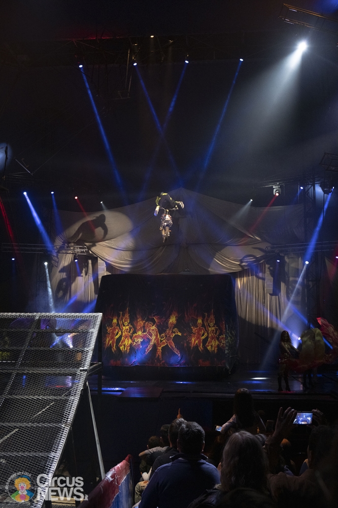 Tra i numeri più spettacolari vi é il lancio in moto attraverso una rampa, il motociclista é « in volo » dal pubblico fino sul palco, il pubblico é impressionato, lascio il circo felice con bei ricordi.