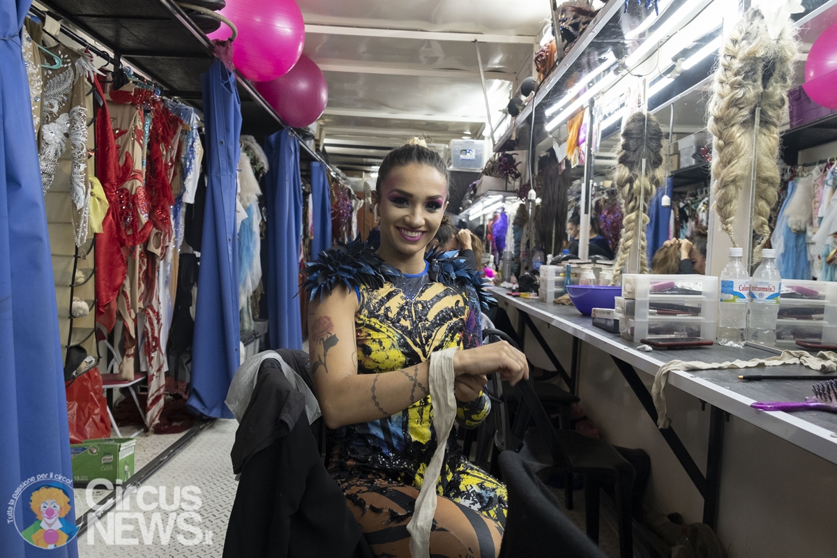 La direttrice artistica del circo, Ginette Servián, mi ha accolto subito nel loro circo raccontandomi del Festival di Monte-Carlo con suo marito trapezista e del circo che gestisce con più di 40 artisti sul palco con abilità circensi di ogni genere. Con acrobati che hanno girato il mondo, trapezisti che hanno lavorato con il Cirque du Soleil. I costumi sono impressionanti, la musica è originale. Nella tenda c’è la capacità di oltre 2.000 persone ad anfiteatro.