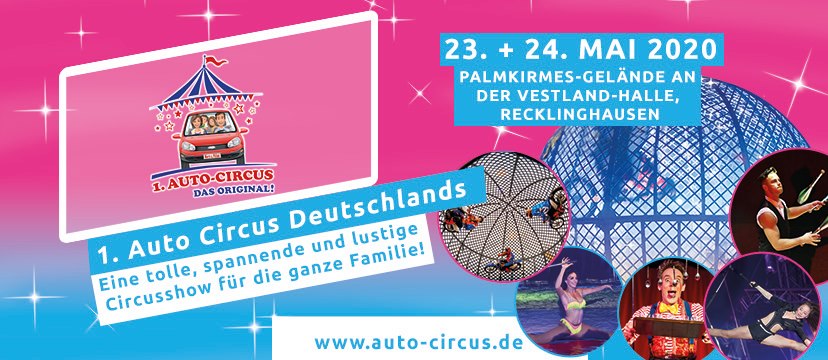 Il 1° Auto-Circus si terrà il 23 e 24 maggio 2020 presso la Zona Fieristica delle Palme nei pressi dell’arena Vestland-Halle a Recklinghausen, città della Renania Settentrionale-Vestfalia, in Germania.