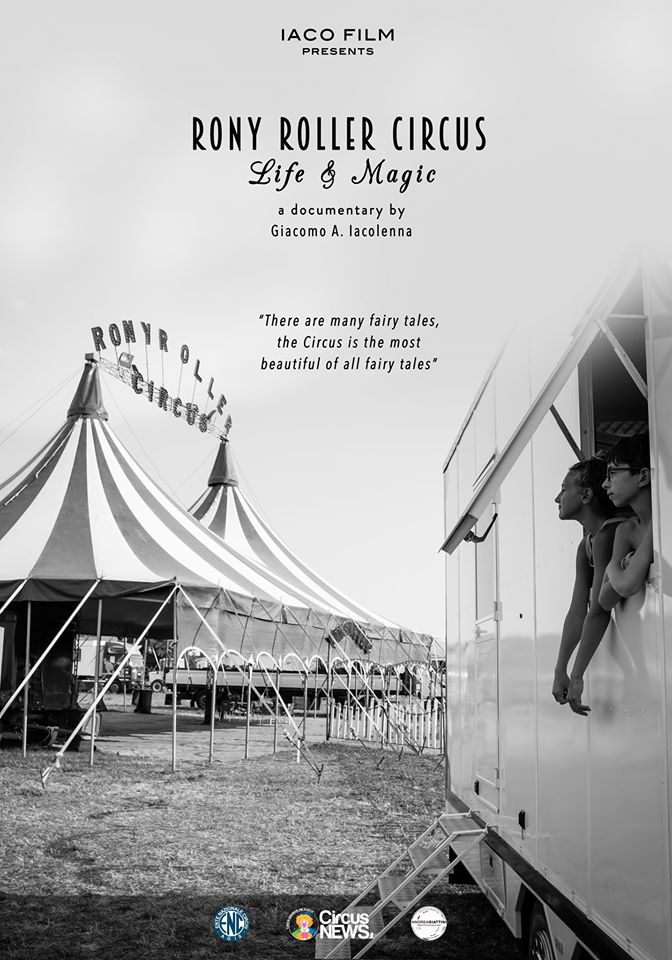 Ecco la locandina ufficiale del documentario "Rony Roller Circus, Life & Magic" realizzato dal filmmaker Giacomo A. Iacolenna, con il patrocinio dell'E.N.C. (Ente Nazionale Circhi), attraverso il quale emerge la realtà di una piccola comunità in cui la forza d'animo, l'apertura, la condivisione e l'integrazione tra culture diverse, sono le fondamenta di uno stile di vita differente e ancora poco approfondito. Il tutto è narrato dagli esponenti di una storica e antica famiglia circense: i Vassallo.