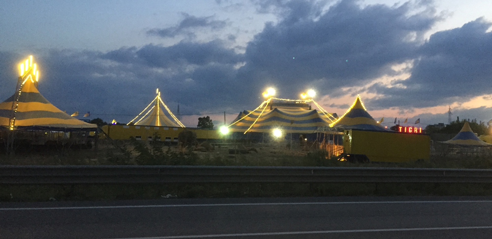 In periodo di pandemia, dove la maggior parte dei circhi ha scelto di ripartire con la formula “sotto le stelle”, i fratelli Martini hanno preferito montare il tradizionale tendone, poltroncine in ogni ordine di posti, tendone blu all’interno con fregi bianchi e rossi in corrispondenza dei pali. L’omissione dei teli perimetrali permette inoltre una più che abbondante areazione di tutto lo chapiteau, in linea con le attuali disposizioni. Scelta vincente: norme anti covid pienamente rispettate e atmosfera circense non solo salva, ma a mille. Chapeau!