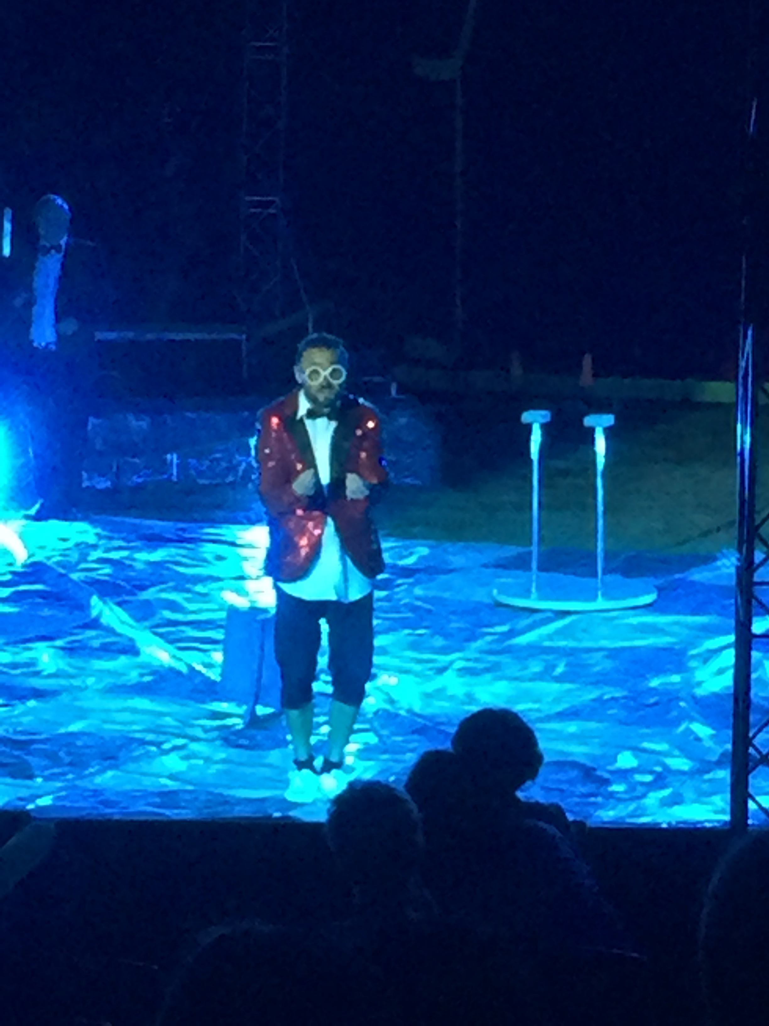Lo spettacolo, presentato da Dario De Felice, inizia puntualissimo con una parata di una quindicina di artisti in variopinti abiti da clown in un carosello danzante con tessuti multicolori che scendono dalla cupola, quasi a disegnare un circo colorato dentro al tendone.