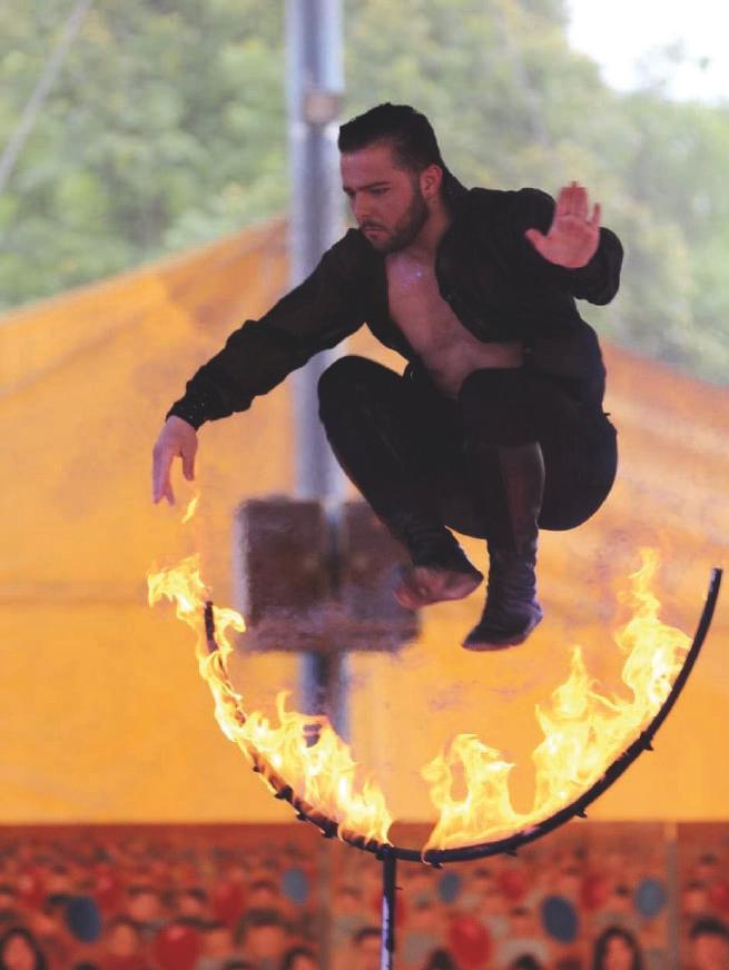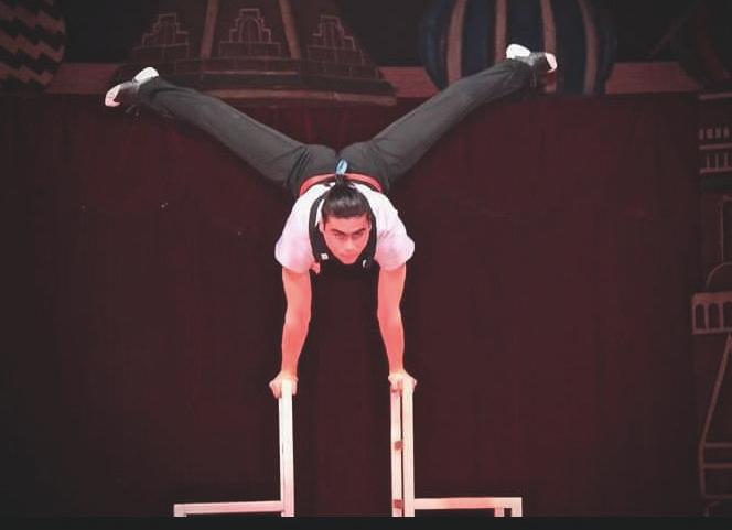 Grazie a Nicholas Errani, l’edizione Speciale del Festival di Latina ospita una delle discipline più difficili e rare da vedere in pista: il trapezio Washington. Nicholas, artista di grande esperienza, formatosi sotto la guida del padre, a Latina di esibisce in un numero di equilibrismo con la testa al trapezio oscillante, con tre diverse varianti di oscillazione.