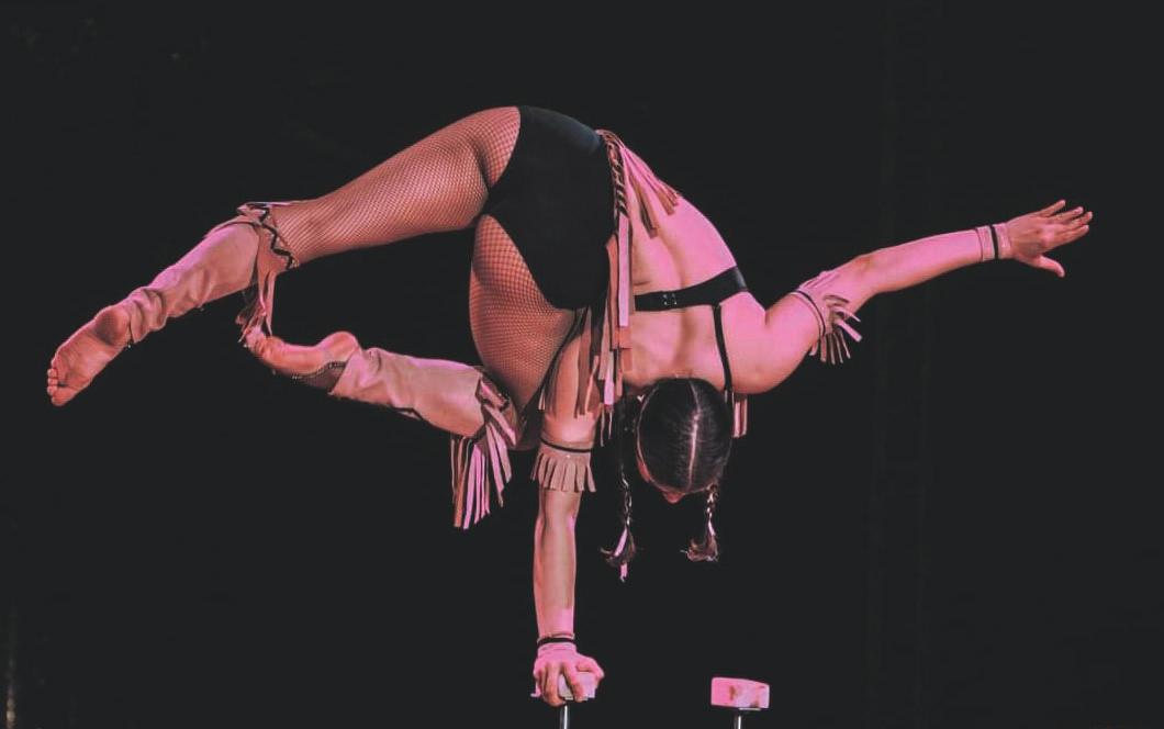 Kimberly La Veglia nasce nel 2002. La sua carriera si forma grazie a una lunga – nonostante la giovane età – gavetta nel circo di famiglia, dove si specializza nella disciplina del verticalismo. A Latina porta in scena uno stile “nativo americano”, che caratterizza la sua performance ricca di eleganza e forza.