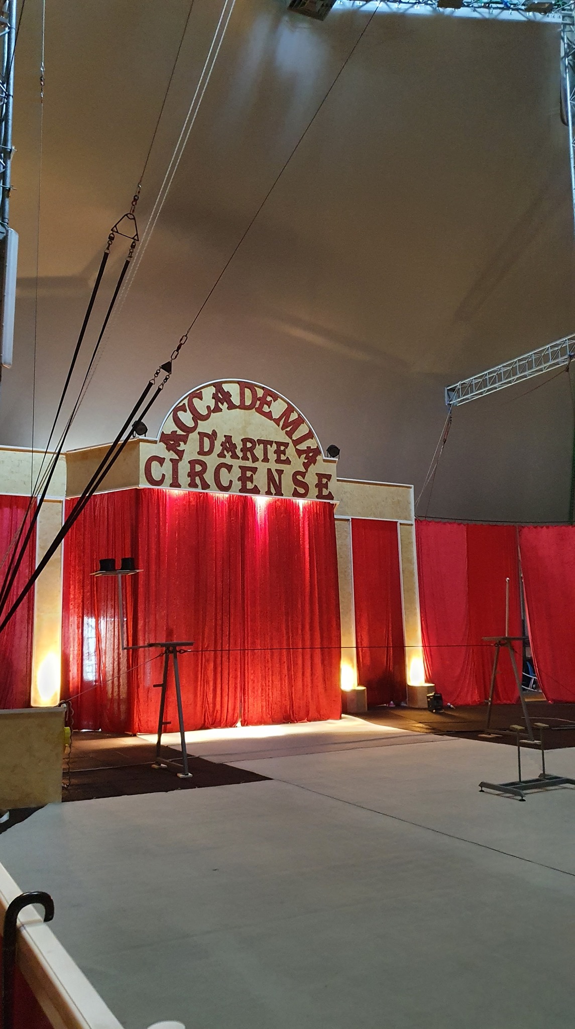 L’accademia è una splendida realtà nel cuore di Verona: la struttura principale, pur essendo fissa, è a tutti gli effetti uno chapiteau con ogni genere di attrezzo per lo studio delle discipline circensi. Attraversando la barriera, si arriva nel backstage da cui si accede alle camere dei ragazzi, sistemate in una doppia fila di container, quasi come se fossero campini. Ci sono le cucine con la sala mensa, le sale per lo studio, una sala danza. C’è persino una officina nella quale vengono ideati e creati in totale autonomia tutti gli attrezzi per i ragazzi: l’officina interna serve a costruire gli attrezzi su misura, ma anche a risparmiare quattrini.